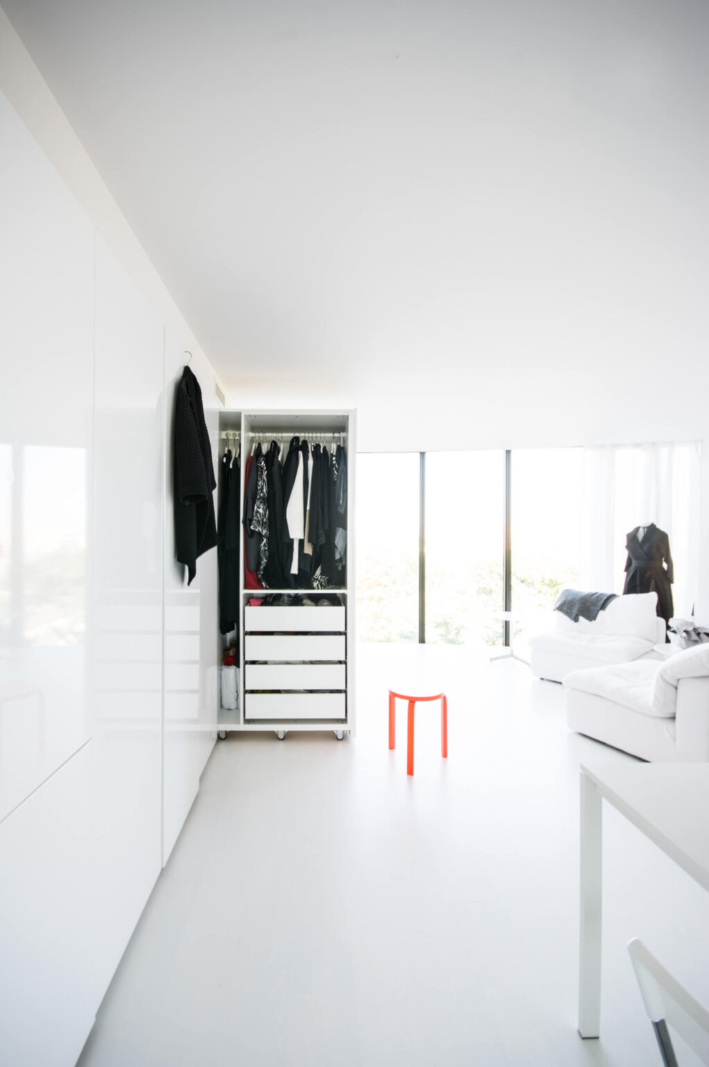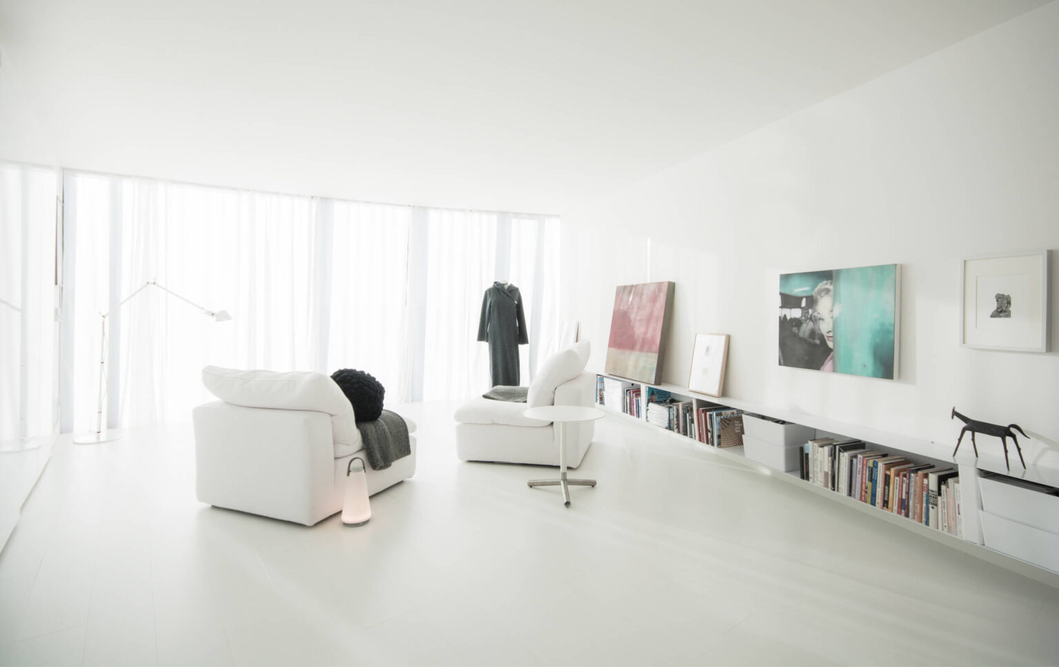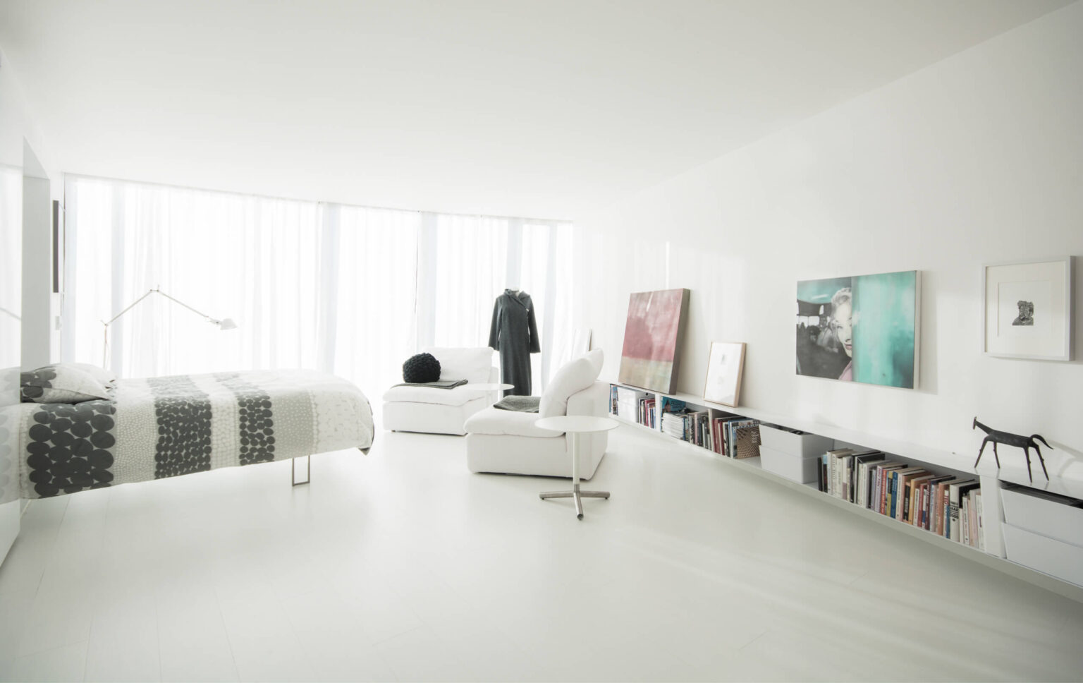 The concept for this condominium took minimalism to a whole new level. 0812 worked with the project architect to deliver an entirely hidden program for the end user. The kitchen, bedroom, and closets all ’tuck away’ along one wall for a clean, crisp look.