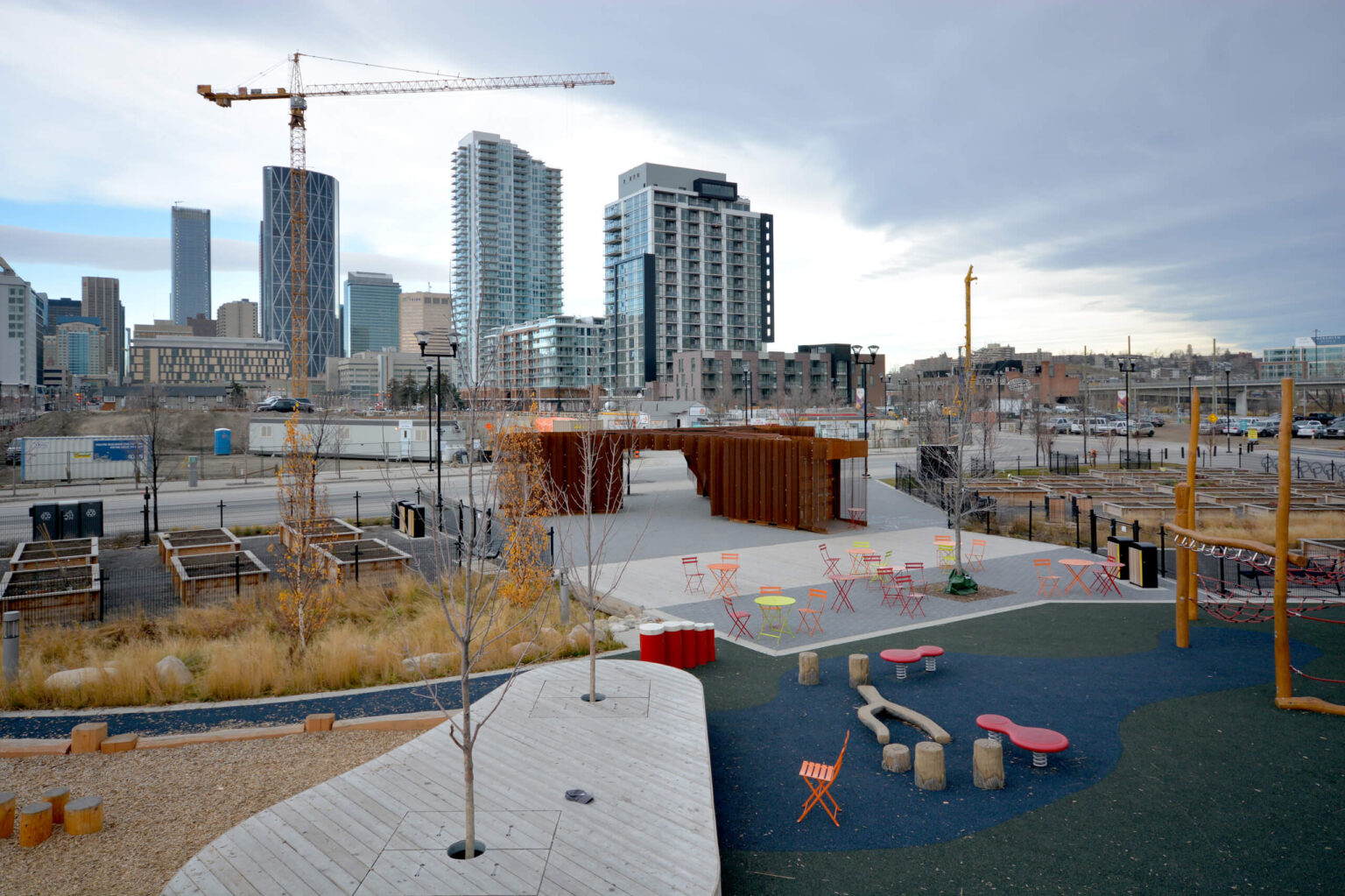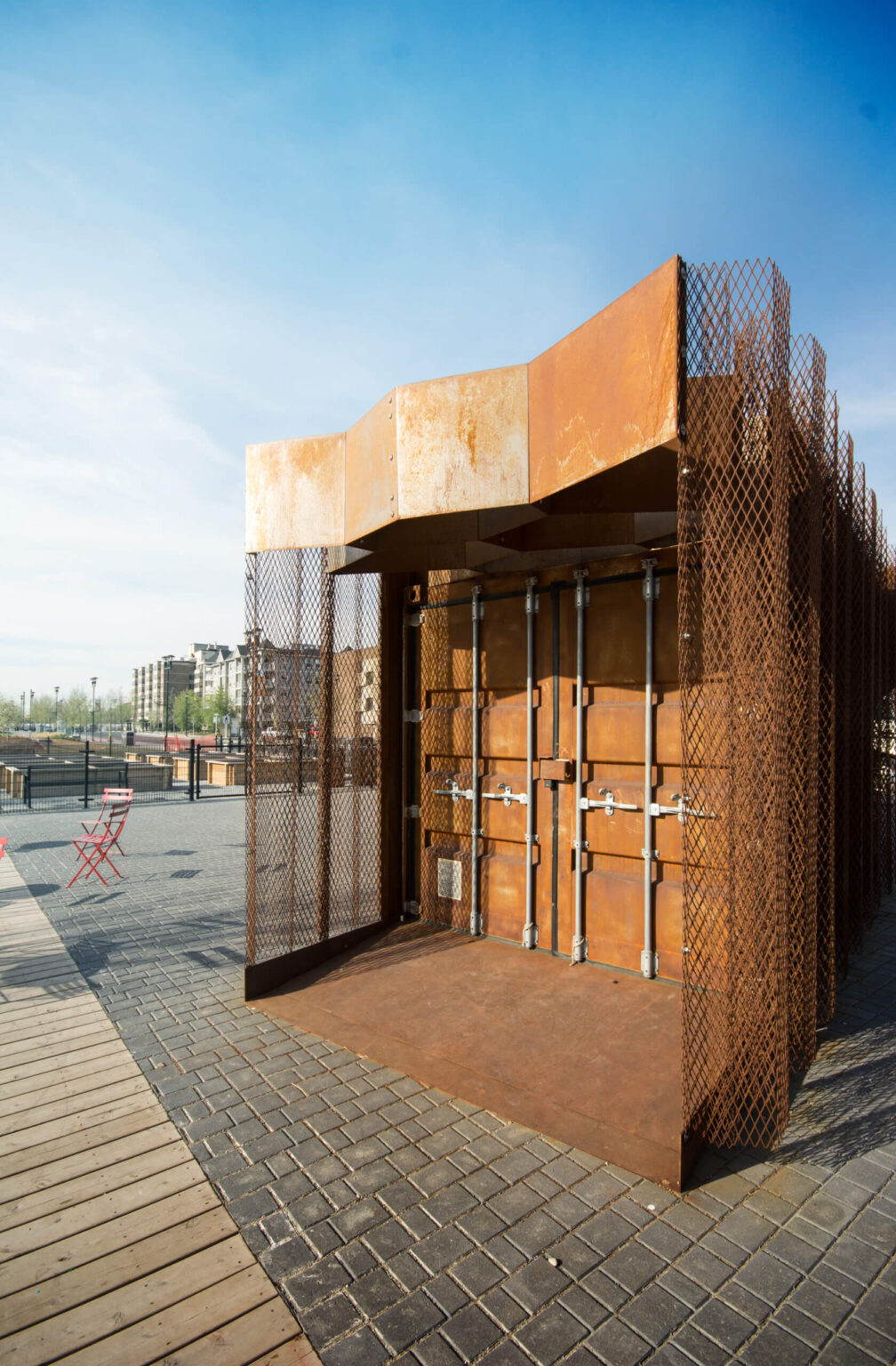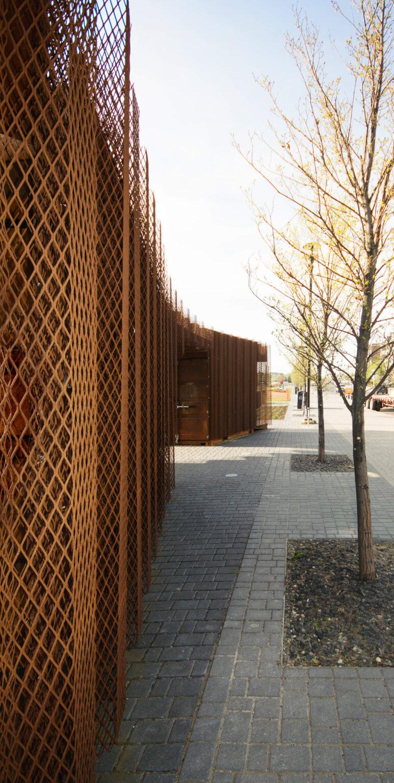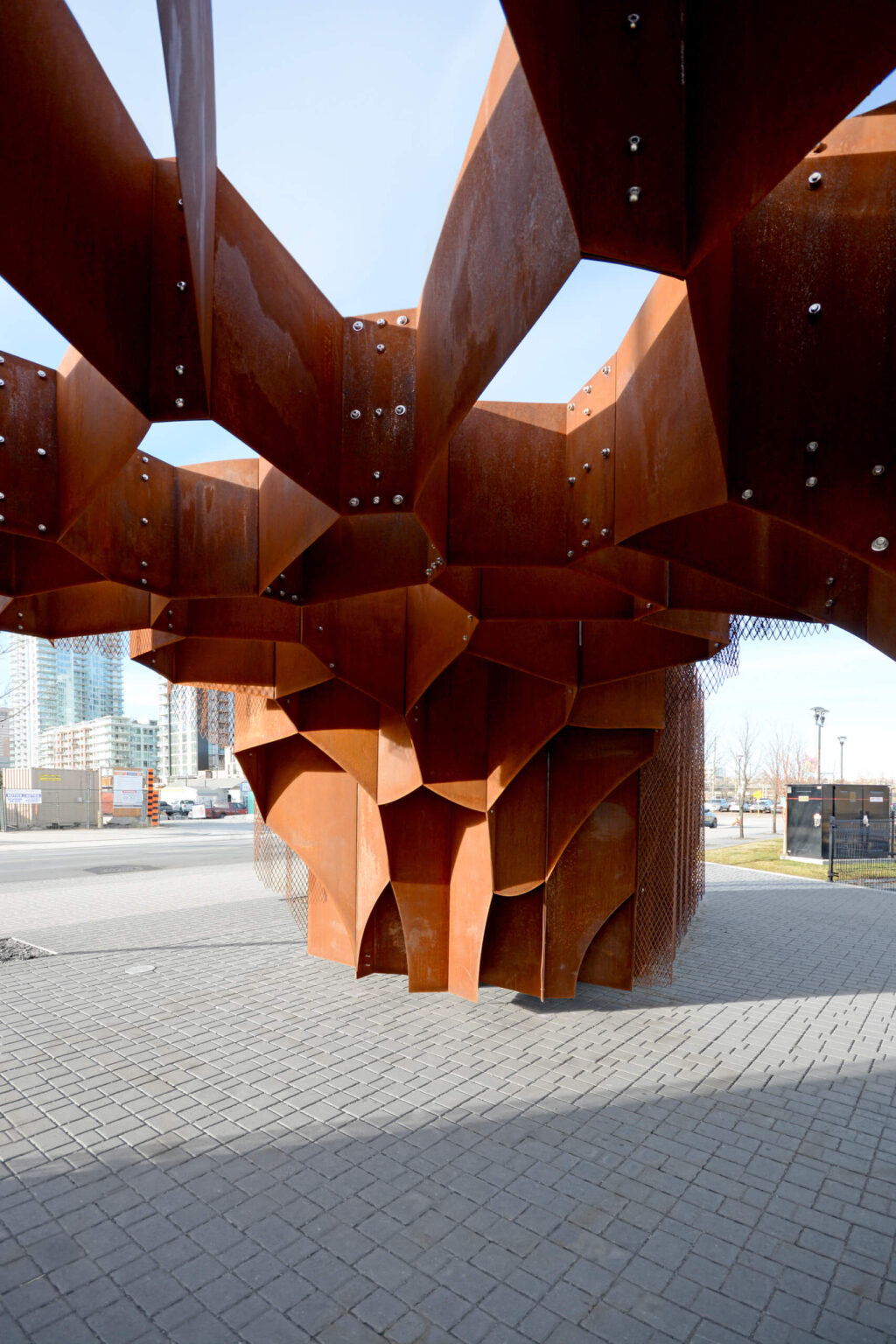 Through an iterative process 0812, the project architect and engineer worked collaboratively in order to will this garden storage structure to life. 0812 constructed and deconstructed the installation in Winnipeg for quality control purposes, only to ship the components to downtown Calgary for reassembly and final installation.