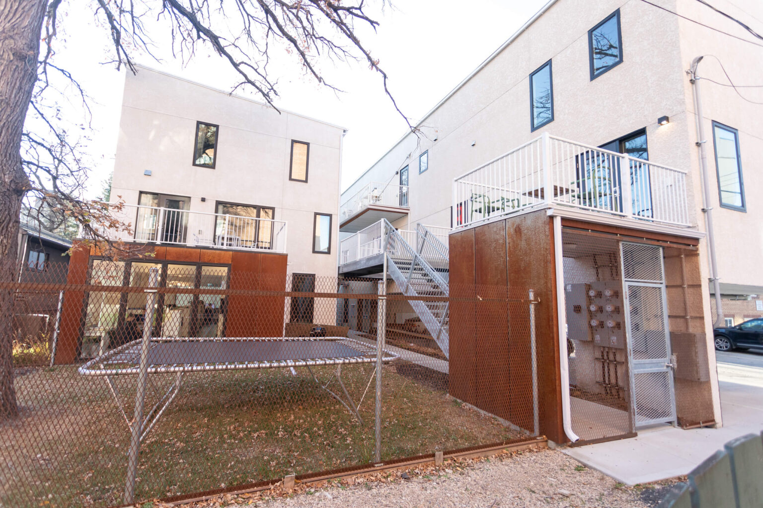 Located in Osborne Village, this mixed use build houses six residential and two commercial units. The lower floors are home to a local restaurant and the main office of the project architect, Sputnik Architecture Inc. This modern and innovative design complements the neighbourhood with the natural patina of the Corten steel facade.